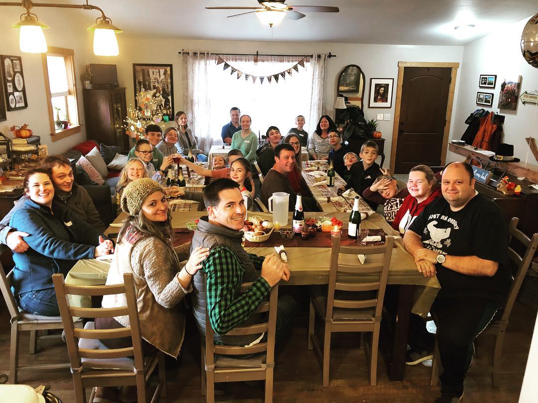 We had a joyful Thanksgiving gathering & the food was so good! Clockwise from six o'clock: my bro Matt Post, SIL Ashley Post, my sis Sara Hamlin, BIL Rob Hamlin, Riley (Ashley's), Matthew Jelli, TJay Jelli, Heidi, (at the back table) SIL Kelli Melin, Rich's bro Jess Melin (Jelli), Summer (Jelli), Simon (Jelli), Adair Peacock (friend); (in the middle) Lexi (Jelli), James, Kaylee Hamlin, Rich's bro Mike Melin, Addie, Raef Hamlin; (right table) Brady, Ammon, Cooper, Niles, Kristina, Richard /Jamie |